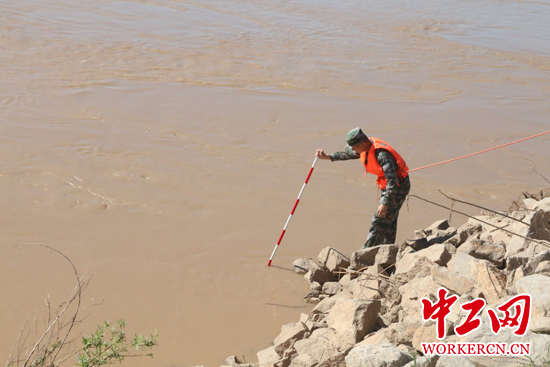 李濤在探摸根石。中工網(wǎng)記者 朱晶晶 攝