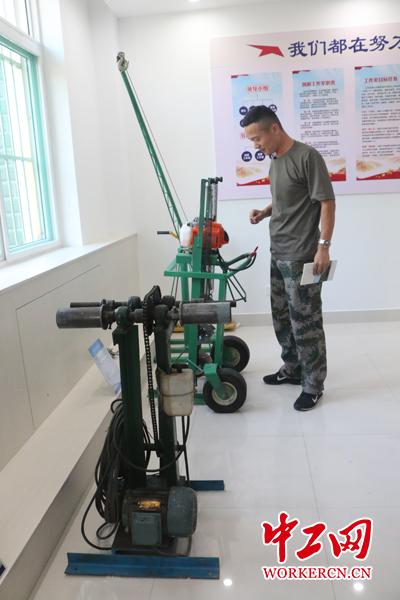 李濤在介紹他參與的發(fā)明、改進(jìn)機(jī)器工具。中工網(wǎng)記者 朱晶晶 攝