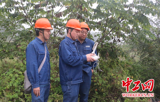周紅亮和團(tuán)隊在使用無人機(jī)巡檢。中工網(wǎng)記者 朱晶晶 攝