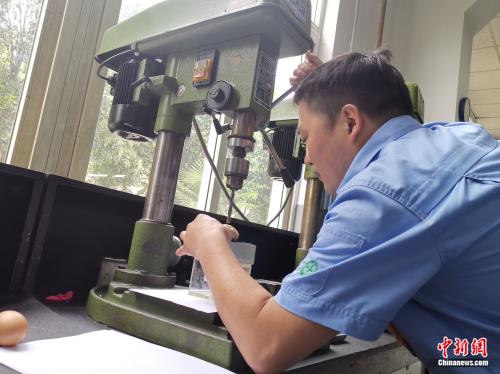 為掌握手感把握精度,張新停開始在紙和雞蛋上鉆孔,當(dāng)鉆頭可以精確止于蛋膜時,他為此已經(jīng)用了3000多枚雞蛋。為了在鵪鶉蛋上鉆孔,他又開始了苦練。