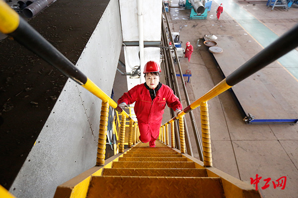 45級階梯、22.5米高,這是黃顏每天要攀爬的階梯和高度。在半空中,她每天看著幾十噸的重物在手里如同積木,轉(zhuǎn)移、搬運……沒錯,黃顏是天車操作手,簡稱“天車工”。
