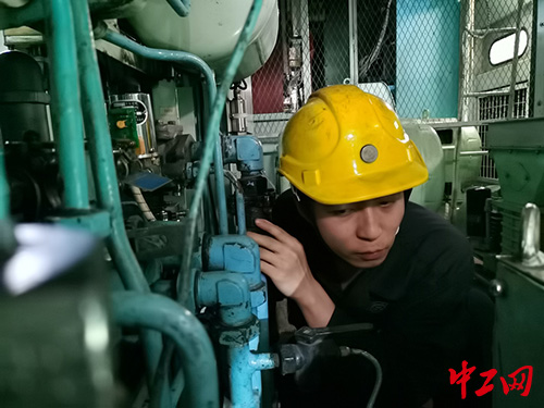 李飛大步流星走到機械間,迅速對氣閥柜進行檢測。他時站時蹲,小步挪動,耳朵輕輕湊近氣閥柜的一個個部件,屏氣凝神,十分專注。