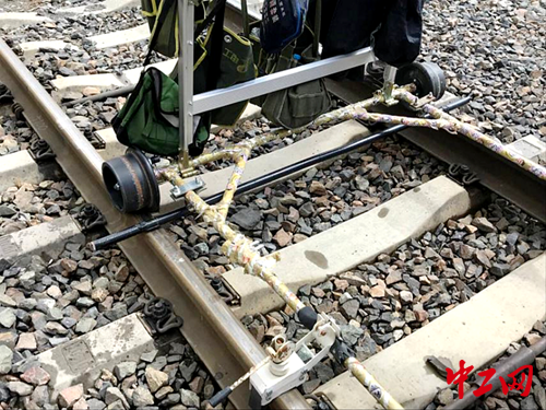 怎樣才能消除隱患,確保施工安全?中鐵武漢電氣化局浦梅項目部有自己的小妙招。在接觸網施工現(xiàn)場可以看到,有兩根鋼管與作業(yè)梯車的底盤垂直交叉,一前一后,用卡箍抱接底盤骨架,在底盤骨架下方,和鋼軌保持著1-2公分的垂直距離,網工們稱呼其為“防傾桿”。這兩根不起眼的鋼管,是怎么發(fā)揮“防止梯車傾覆”作用的呢?
