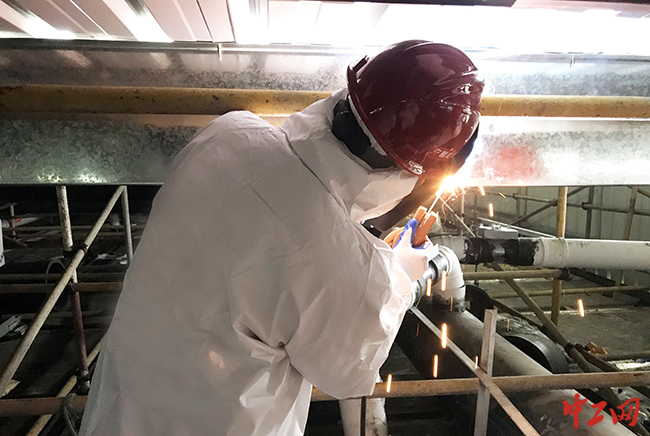 李榮清在雷神山醫(yī)院焊接現(xiàn)場(chǎng)