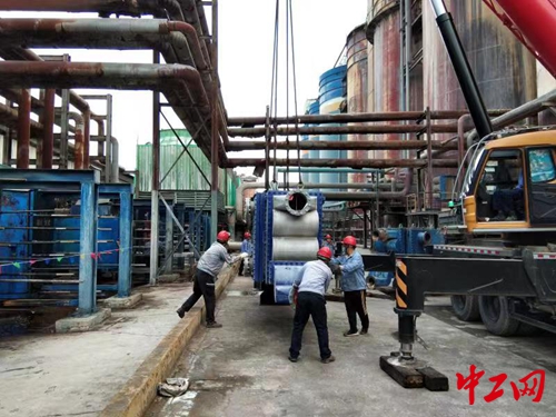 工服員工在二鋁分解東工區(qū)附聚寬板降溫器改造現(xiàn)場