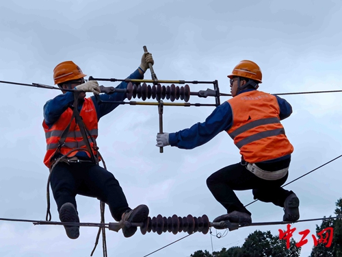 職工使用軟橫跨絕緣子更換器現(xiàn)場作業(yè)