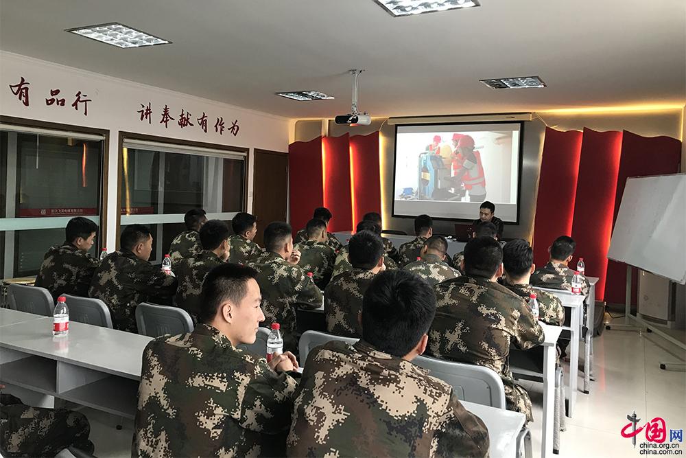 圖為蔡劍云給消防員培訓(xùn)解救被困電梯群眾的課程。