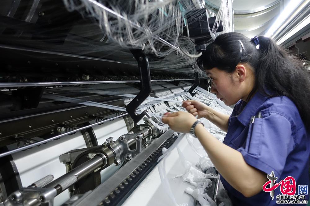 質(zhì)量和效率,是生產(chǎn)線上的兩大要素,每逢工期緊張,趙巧娟甚至吃飯都在經(jīng)編機(jī)前,就是為了贏得那么短短幾分鐘時(shí)間來(lái)加快進(jìn)度。在她的帶動(dòng)下,公司編織的這匹“布”,材質(zhì)越來(lái)越好,產(chǎn)量越來(lái)越高,工藝越來(lái)越深,而登上的舞臺(tái),也越來(lái)越大。