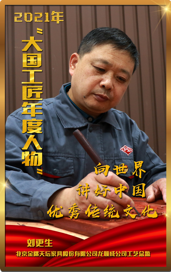 劉更生是中國非物質(zhì)文化遺產(chǎn)京作硬木家具制作技藝第五代代表性傳承人、北京金隅天壇家具股份有限公司龍順成公司工藝總監(jiān)。