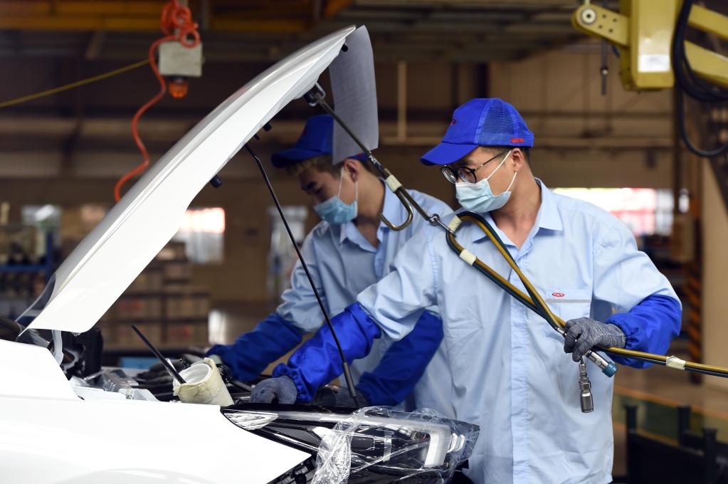 2020年5月20日,在位于安徽省蕪湖市的奇瑞汽車股份有限公司,工人在總裝三車間忙碌。新華社發(fā)(周牧攝)