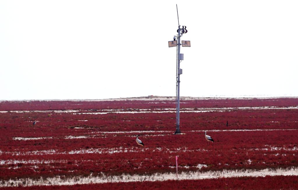 這是山東黃河三角洲國家級自然保護(hù)區(qū)里的生態(tài)環(huán)境監(jiān)控設(shè)備(資料照片)。新華社發(fā)