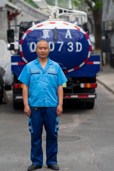 在北京的胡同里給居民們掏糞
