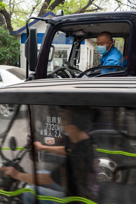 4月25日,北京市東城區(qū)的環(huán)衛(wèi)工人引導(dǎo)孫志寶倒車進(jìn)入公益巷胡同。