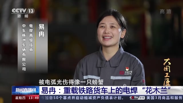 中車株洲車輛有限公司電焊高級技師 易冉:工作第一天應該是被電弧光傷得像一只螃蟹,煮熟的螃蟹。(臉)摸都不能摸,碰都不能碰。