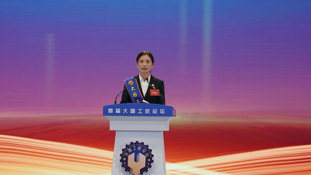9月2日,首屆大國工匠論壇在湖南長沙隆重開幕。圖為“大國工匠”代表易冉宣讀致全國各行各業(yè)工匠和技能人才倡議書。