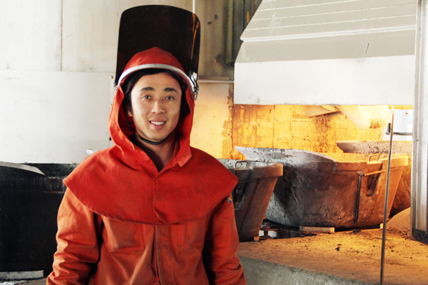 為了解決這個(gè)難題,他嚴(yán)格要求自己,靠著一點(diǎn)一滴的積累不斷提升普通話水平,每有閑暇就主動(dòng)找老師傅請(qǐng)教崗位操作技能,并購(gòu)買了電石生產(chǎn)工藝技術(shù)方面的書(shū)比對(duì)著學(xué)習(xí)。他沒(méi)事就“泡”在電石爐旁去琢磨“怎么出爐省力?”“怎么快速地堵住爐眼?”潛心鉆研專業(yè)知識(shí)。不到一年時(shí)間,他成為了班里出爐工中的佼佼者,擔(dān)任起了出爐組長(zhǎng)。