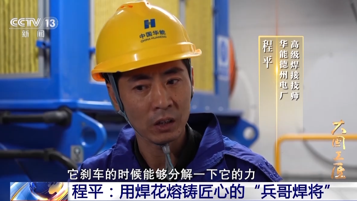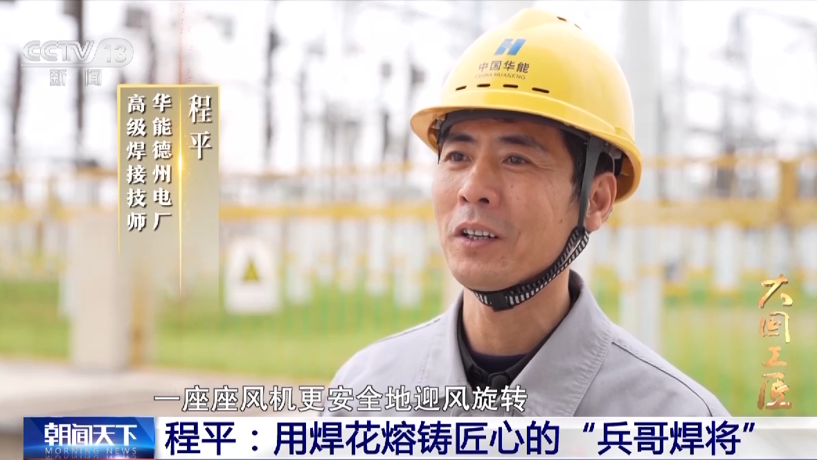 華能德州電廠高級焊接技師 程平:這十來年,新能源迎來了大的發(fā)展,每次看到經(jīng)過我的手,一座座風機更安全地迎風旋轉(zhuǎn),能夠參與新能源的建設(shè),為國家出一份力,見證它的發(fā)展進程,我感到自己非常驕傲也很自豪。