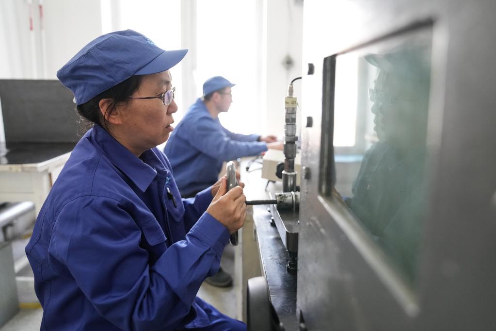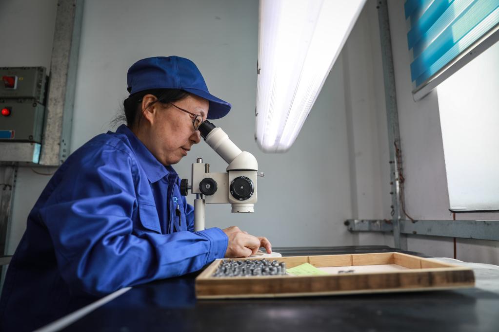 孫曉霞在檢查產(chǎn)品質(zhì)量。新華社記者潘昱龍攝