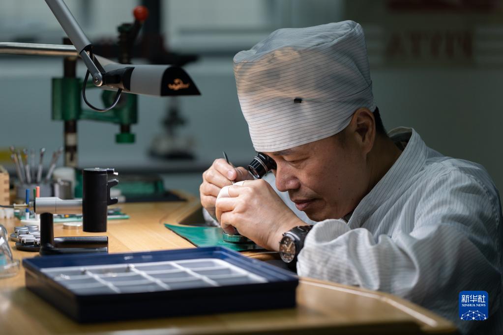 4月25日,在位于深圳的飛亞達(dá)鐘表大廈,劉中華裝配手表。新華社記者 毛思倩 攝
