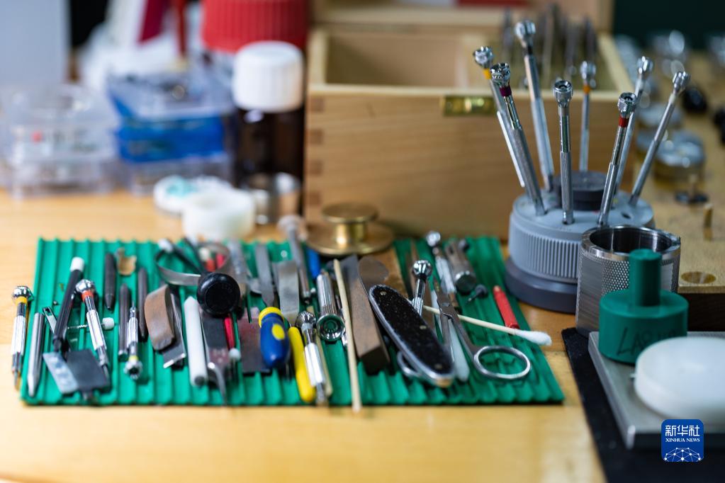 4月25日在位于深圳的飛亞達(dá)鐘表大廈拍攝的劉中華工位上的工具。新華社記者 毛思倩 攝