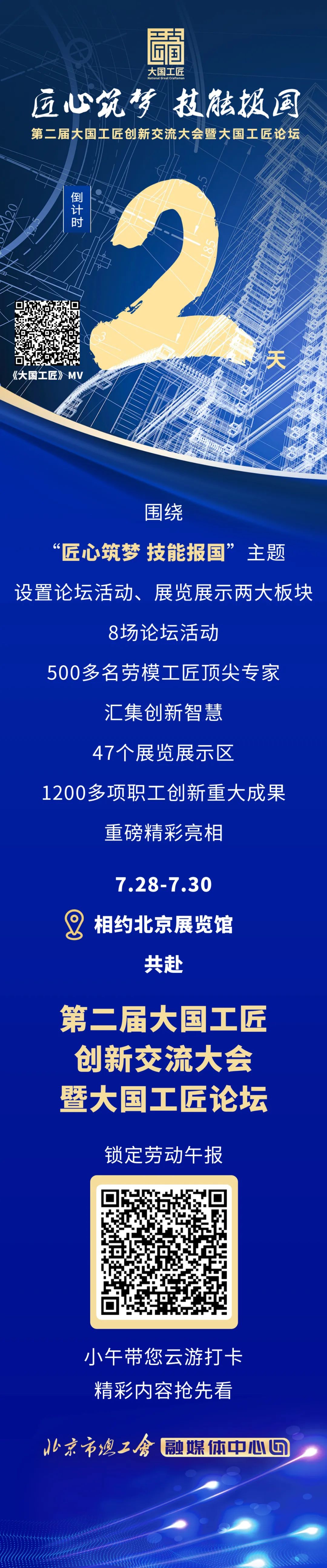 由中華全國總工會、中共北京市委、北京市人民政府共同主辦,中華全國總工會勞動和經(jīng)濟(jì)工作部、北京市總工會具體承辦,以“匠心筑夢 技能報(bào)國”為主題的第二屆大國工匠創(chuàng)新交流大會暨大國工匠論壇將于7月28日至30日在北京舉辦。主題音樂《大國工匠》通過對各省市、各行業(yè)大國工匠勞動場景和個人風(fēng)采的全景展示,生動展現(xiàn)了大國工匠在中國制造、中國創(chuàng)造中的卓越貢獻(xiàn),在強(qiáng)國建設(shè)、民族復(fù)興中的重要作用。主題音樂《大國工匠》由著名詞作家、職工藝術(shù)家宋青松作詞,著名作曲家、職工藝術(shù)家修駿作曲,青年歌唱家柏文、湯非演唱,曾獲當(dāng)代歌曲精品工程獎。