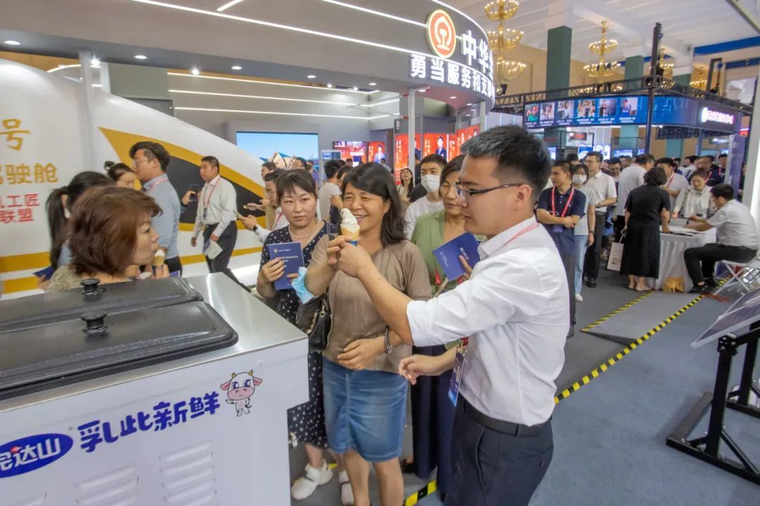 展區(qū)觀眾爆滿,完達(dá)山乳品帶來清涼美味,展區(qū)前排起長龍 。