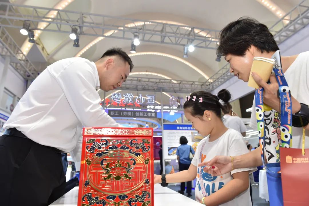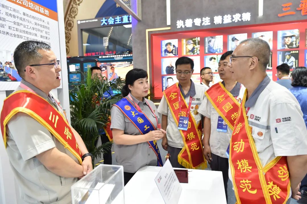 展區(qū)內,講解員帶領參觀者參觀著山西展區(qū)內的每一項創(chuàng)新成果,勞模工匠站在展臺前,配合著講解員,熱情地向參觀者介紹產(chǎn)品的具體參數(shù)、設計思路。面對其它展區(qū)來交流參觀的同行們,三晉工匠們與他們充分交流、激烈討論,互相分享著自己的創(chuàng)新經(jīng)驗與心得。