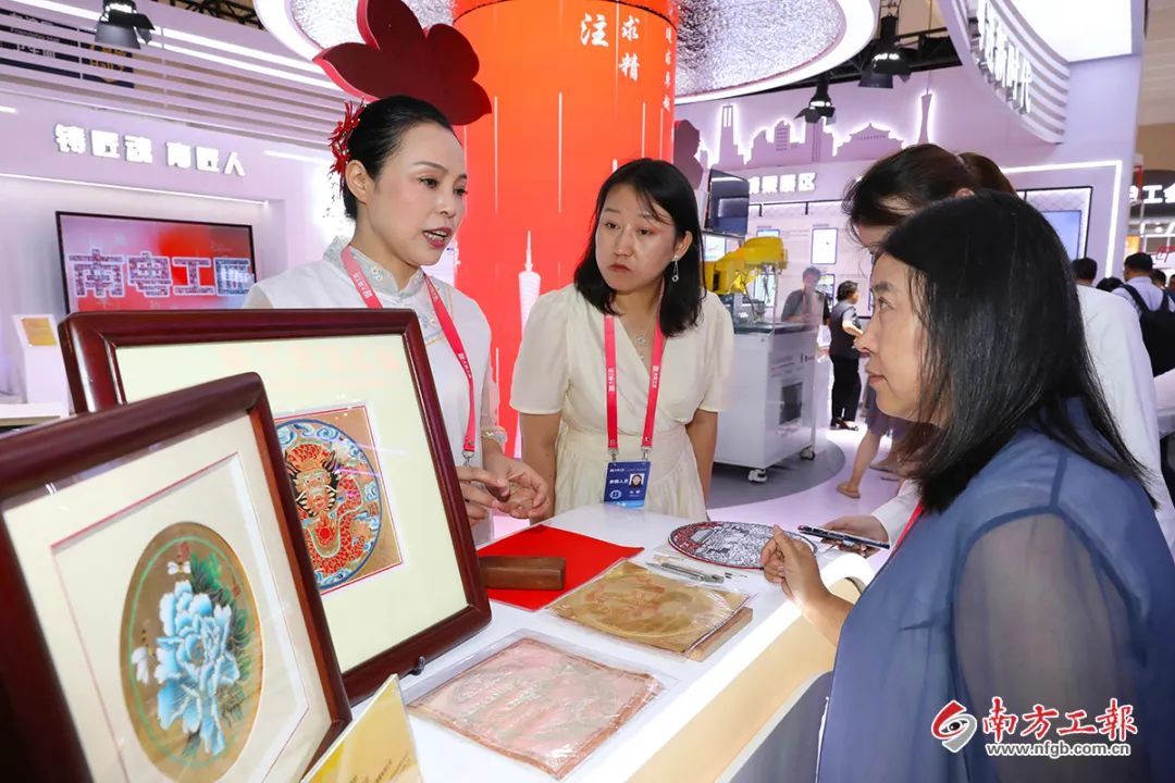 在廣東省總工會(huì)展區(qū)觀眾既可以一覽工匠風(fēng)采,又可以品鑒優(yōu)秀職工的創(chuàng)新成果。
