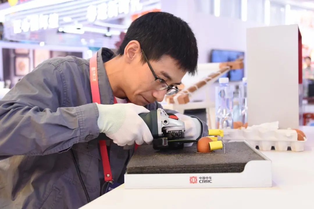 生雞蛋上刻字,殼穿而膜不破。來(lái)自中車株洲電力機(jī)車有限公司冷作工高級(jí)技師易鵬,使用電動(dòng)角磨機(jī)在生雞蛋上刻字,一個(gè)簡(jiǎn)單的字最短只需要2分鐘。記者看到,他現(xiàn)場(chǎng)刻出了“大國(guó)工匠”4個(gè)字。易鵬說(shuō),要做到殼穿而膜不破,心要靜、眼要準(zhǔn)、手要快。