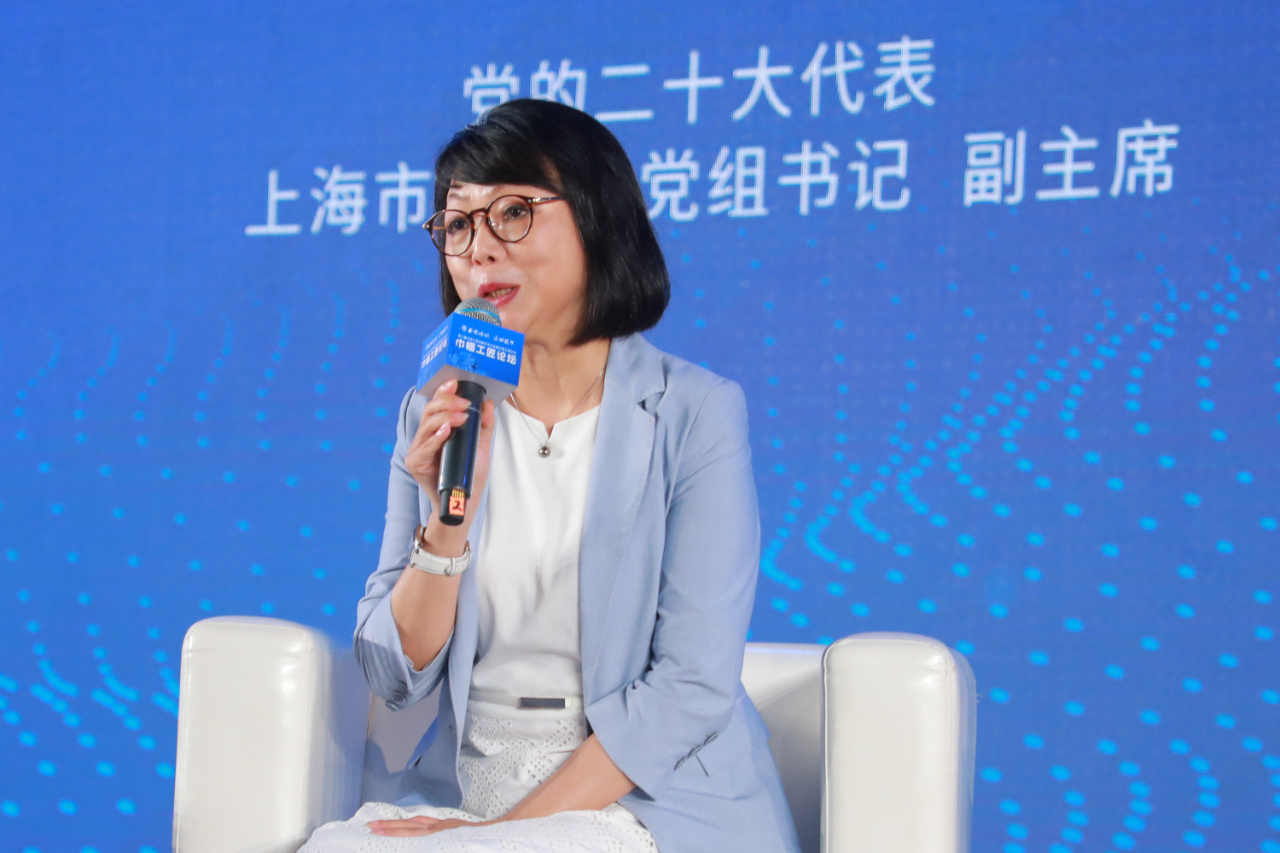 “巾幗工匠論壇”上,上海市總工會(huì)副主席黃紅發(fā)言。