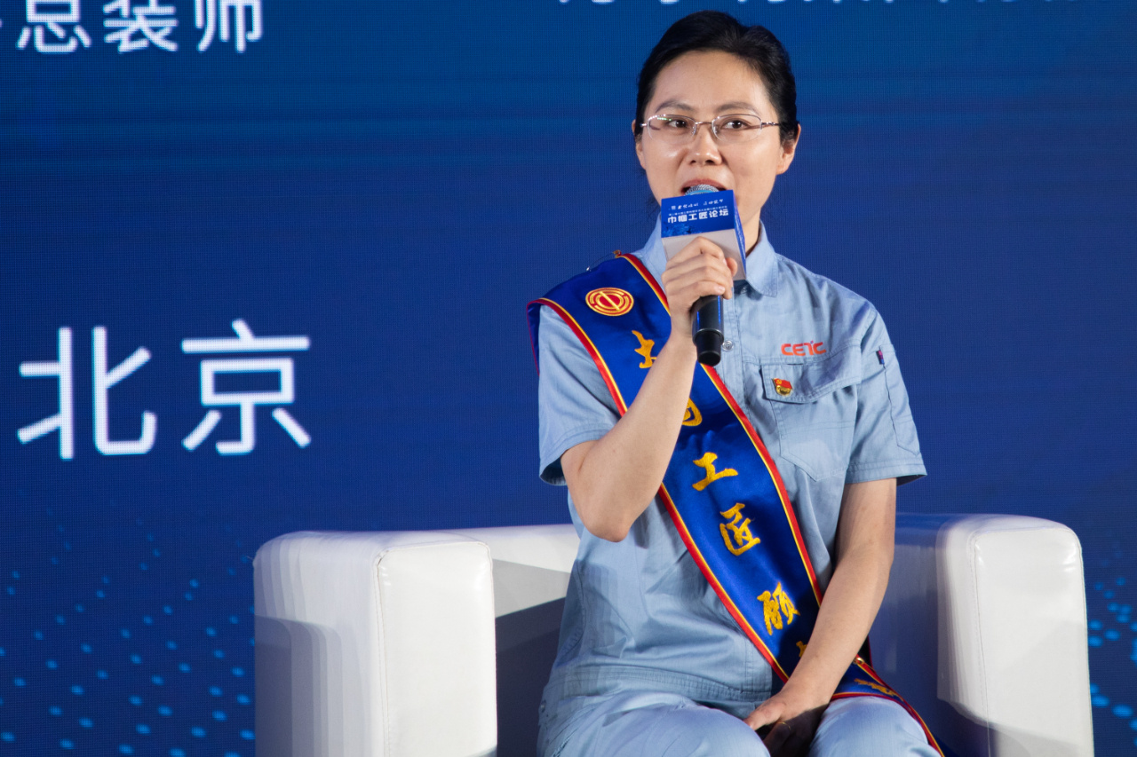 “巾幗工匠論壇”上,“最美職工”周時(shí)瑩發(fā)言。