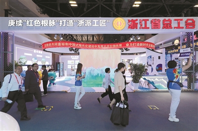 此次大會(huì)上,浙江省總工會(huì)展區(qū)以“庚續(xù)‘紅色根脈’,打造‘浙派工匠’”為主題,展現(xiàn)以“浙派工匠”為代表的高素質(zhì)職工隊(duì)伍建設(shè)的卓越成果,展示部分優(yōu)秀勞模工匠的典型事跡以及創(chuàng)新成果。