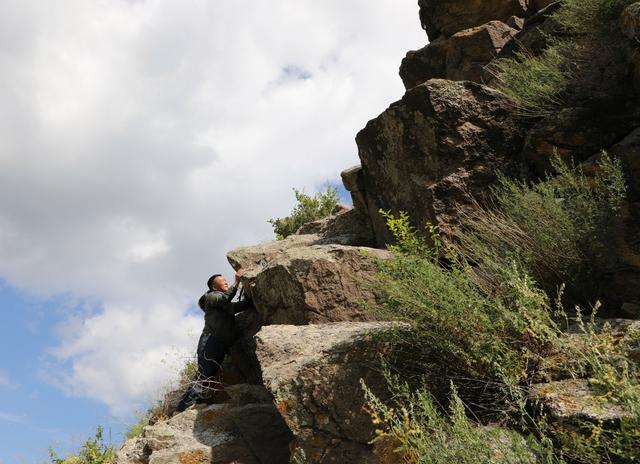 8月10日,白巴嘎那爬上一處石山,架設(shè)紅外相機(jī)。
