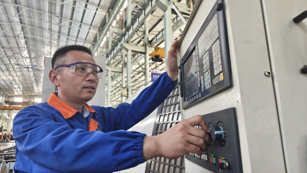 張偉正在操作數(shù)控設(shè)備。新華社記者 蕭海川 攝