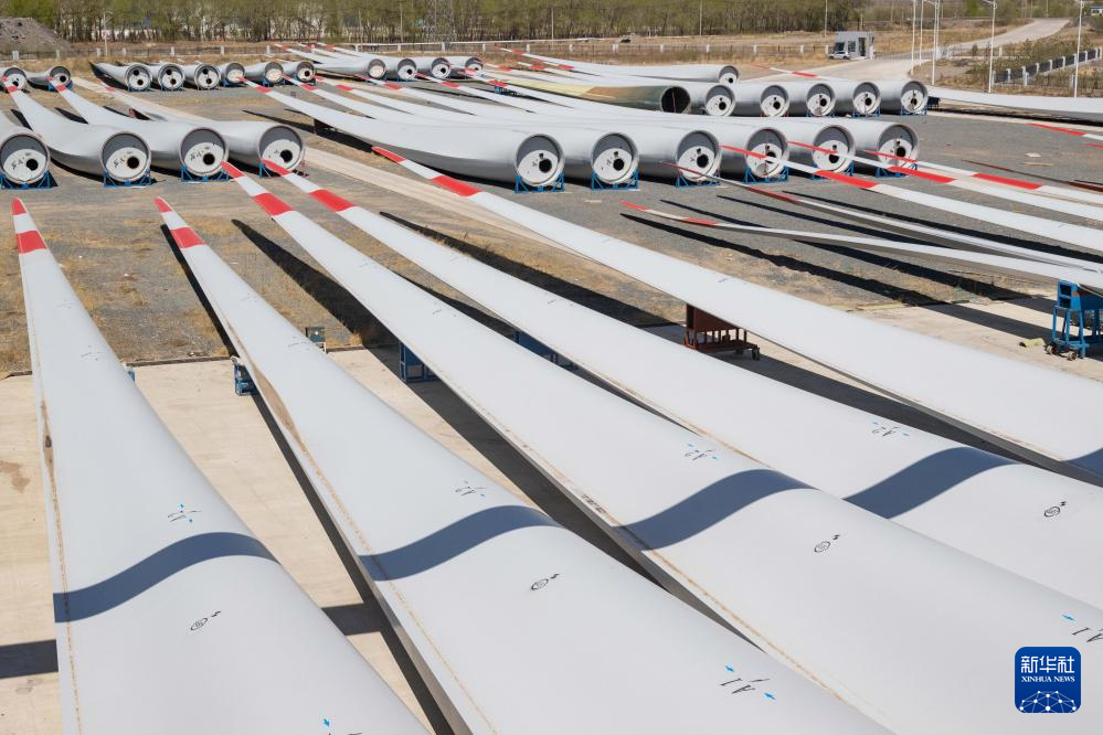 這是4月28日在一重龍申(齊齊哈爾)復合材料有限公司廠區(qū)拍攝的風電葉片。新華社記者 謝劍飛 攝