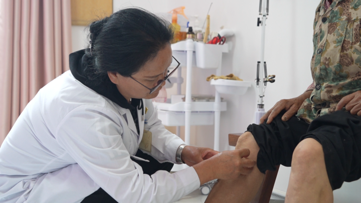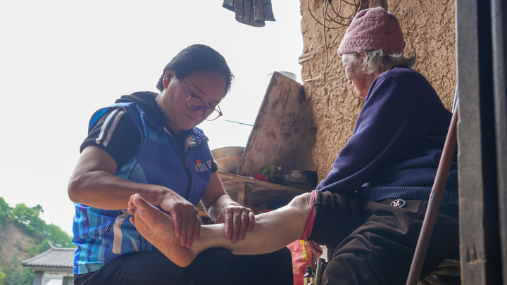 4月22日,張智娟到村民家中進行中醫(yī)診療。(段宏運 攝)