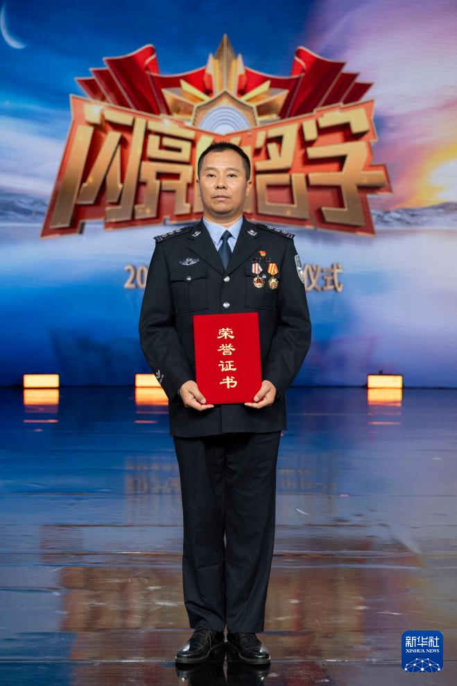 甘肅省臨夏回族自治州消防救援支隊支隊長程恩虎在“最美職工”發(fā)布儀式上(4月24日攝)。新華社記者 才揚 攝