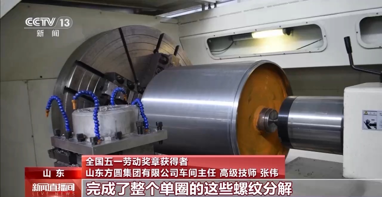全國(guó)五一勞動(dòng)獎(jiǎng)?wù)芦@得者 山東方圓集團(tuán)有限公司車間主任 高級(jí)技師 張偉:我手的位置大約也就是45度的位置,給我?guī)?lái)的靈感,讓我把整個(gè)圓分解成4段,完成了整個(gè)單圈螺紋的分解,無(wú)限次的循環(huán)就可以完成整個(gè)卷筒的加工。