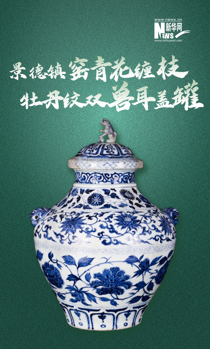 (元)景德鎮(zhèn)窯青花纏枝牡丹紋雙獸耳蓋罐現(xiàn)藏于淮安中國漕運博物館