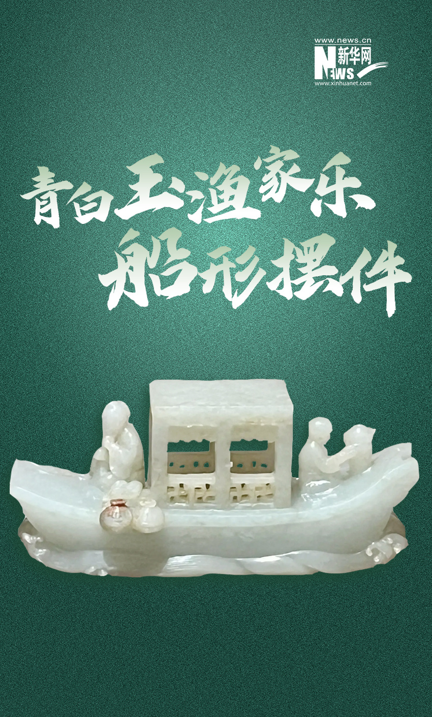 (清)青白玉漁家樂船形擺件,現(xiàn)藏于中國大運河博物館