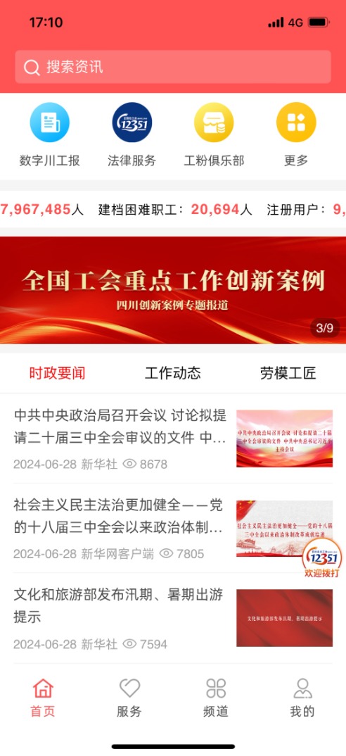 以宣傳數(shù)字化強(qiáng)化思想引領(lǐng)。在四川工會(huì)數(shù)字化平臺(tái)打造工會(huì)融媒體平臺(tái),每天精選新華社、人民日?qǐng)?bào)等權(quán)威報(bào)道,累計(jì)發(fā)布時(shí)政要聞8000余篇,總閱讀量超過(guò)1.6億次,單篇平均閱讀量達(dá)到2萬(wàn)+(其中職工占比近90%)。
