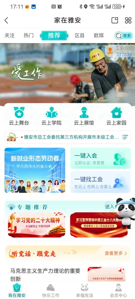 雅安市總工會(huì)以川工之家APP“家在雅安”頻道為載體,運(yùn)用大數(shù)據(jù)、云計(jì)算、區(qū)塊鏈、人工智能等新技術(shù),以業(yè)務(wù)為基礎(chǔ),以服務(wù)為理念,打造充滿活力的“工”字牌應(yīng)用場(chǎng)景,構(gòu)建“智能、便捷、互聯(lián)”的云上數(shù)智化工會(huì)服務(wù)體系。