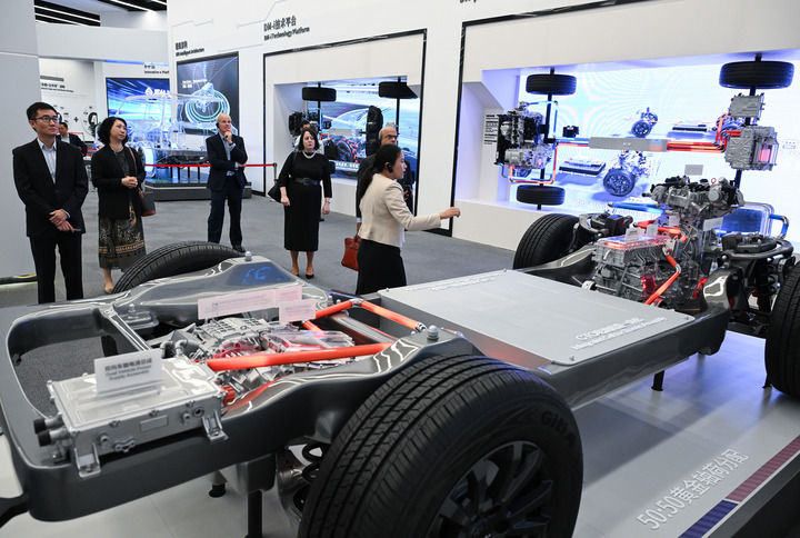 外賓在位于深圳市坪山區(qū)的比亞迪全球總部展廳參觀(2024年7月22日攝)。新華社記者 李賀 攝