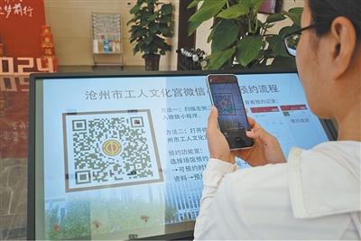 7月21日,職工在滄州市工人文化宮通過掃描微信小程序二維碼查看近期公益培訓(xùn)課程安排。暴秋實(shí)攝