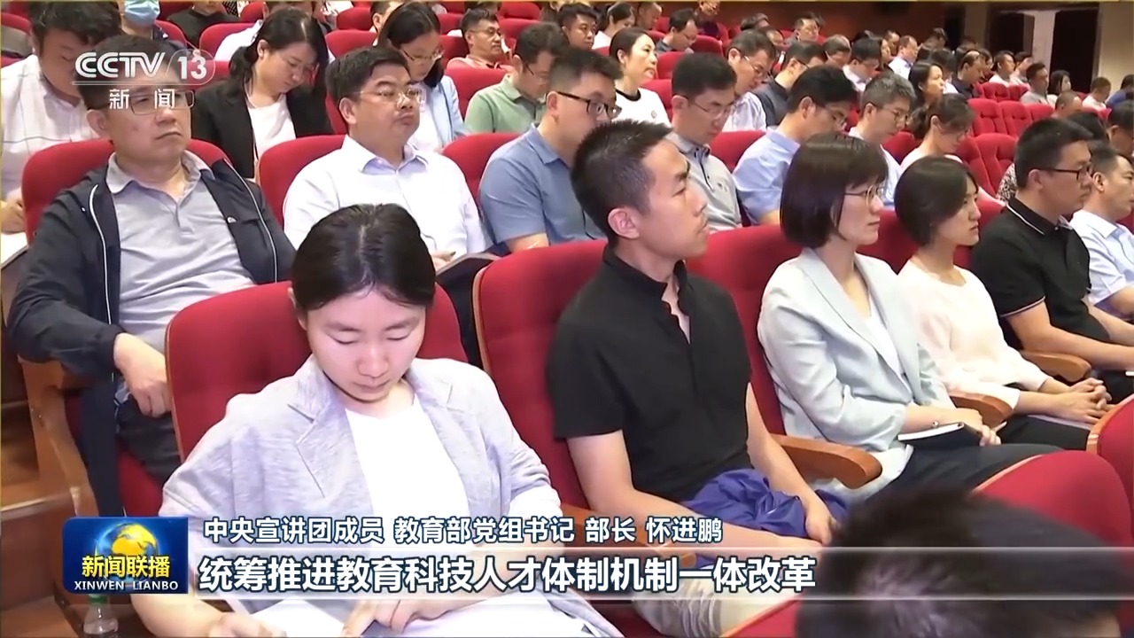 中央宣講團成員、教育部黨組書記、部長 懷進(jìn)鵬:我們要結(jié)合學(xué)習(xí)貫徹全會精神,深刻領(lǐng)會習(xí)近平總書記關(guān)于全面深化改革的一系列新思想、新觀點、新論斷的核心要義、豐富內(nèi)涵、實踐要求,要聚焦重點領(lǐng)域和關(guān)鍵環(huán)節(jié),進(jìn)一步深化教育各領(lǐng)域各環(huán)節(jié)的改革,統(tǒng)籌把握教育從規(guī)模發(fā)展向質(zhì)量發(fā)展的戰(zhàn)略性轉(zhuǎn)變,統(tǒng)籌推進(jìn)教育科技人才體制機制一體改革。
