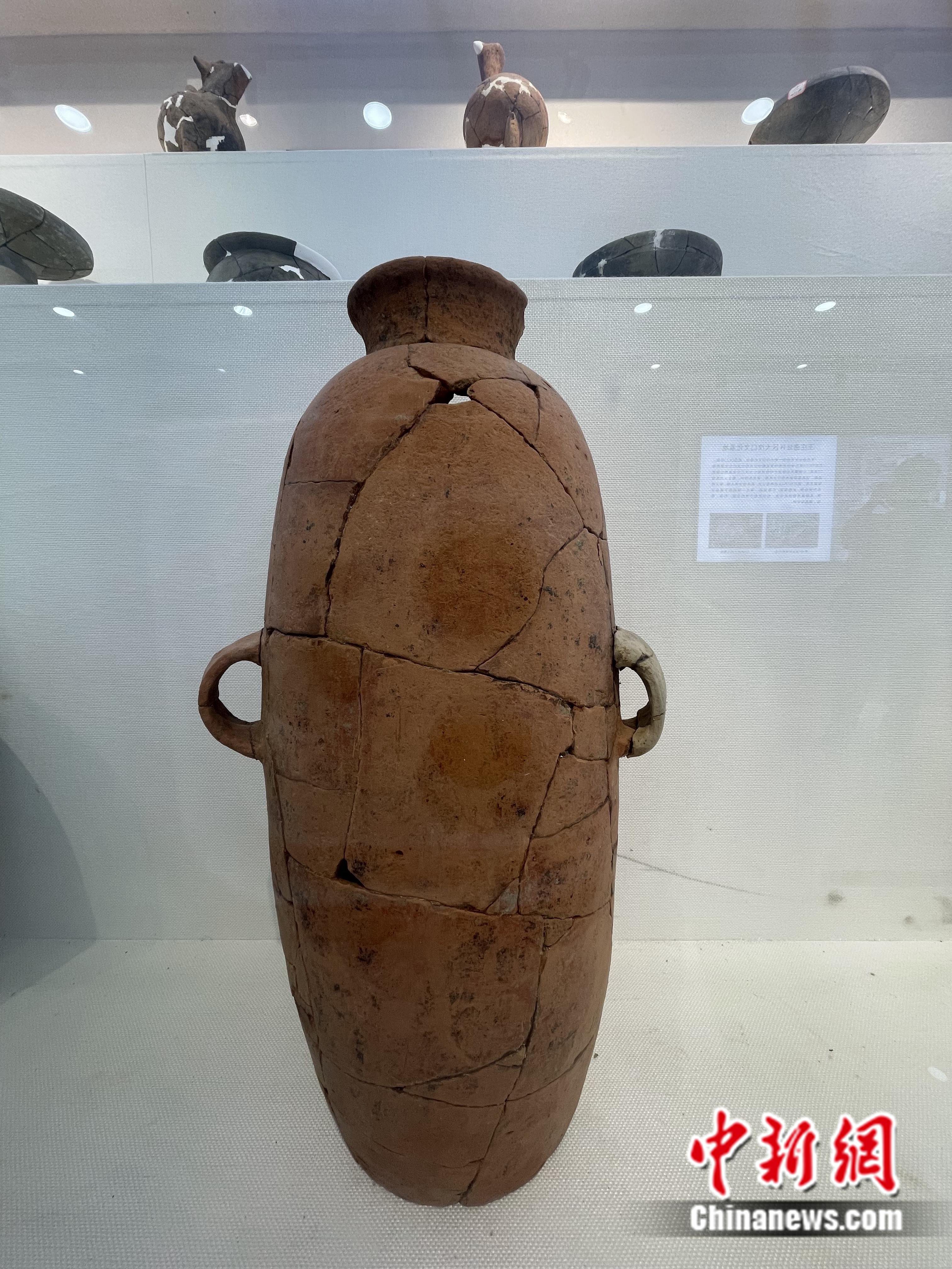 王莊出土的瘦長體背壺。袁秀月 攝