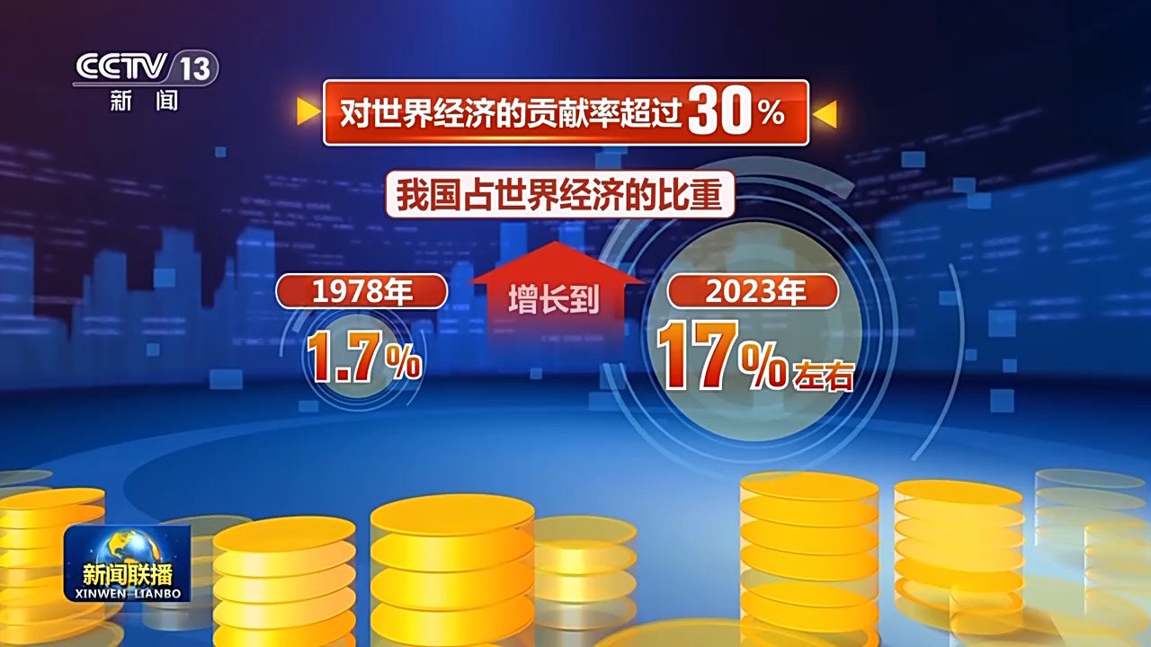 我國占世界經(jīng)濟的比重,從有數(shù)據(jù)統(tǒng)計以來的1978年的1.7%,增長到2023年的17%左右,對世界經(jīng)濟的貢獻(xiàn)率超過30%。