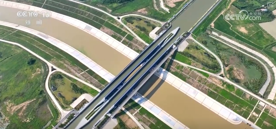 江水北上的過程中,有這樣一座“河上有河”的水利奇觀。這是因為淠河總干渠擋住了引江濟淮北上的河道,為了讓河水不犯江水,水利建設(shè)者架設(shè)渡槽,讓淠河從運河上“飛跨而過”。這座鋼渡槽主跨跨度達(dá)到110米,是目前世界上單跨最大的通水、通航鋼結(jié)構(gòu)渡槽。