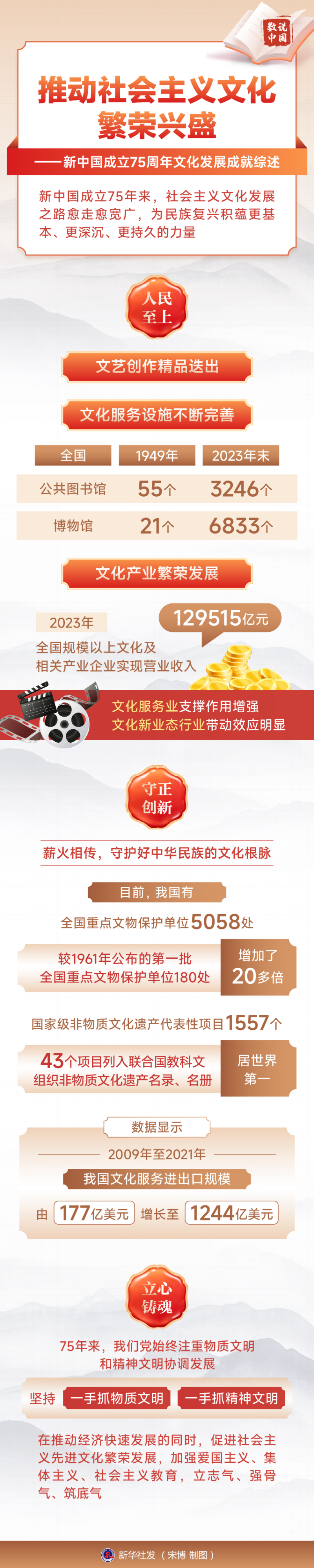 原標(biāo)題:數(shù)說(shuō)中國(guó)·75載輝煌成就|推動(dòng)社會(huì)主義文化繁榮興盛——新中國(guó)成立75周年文化發(fā)展成就綜述
