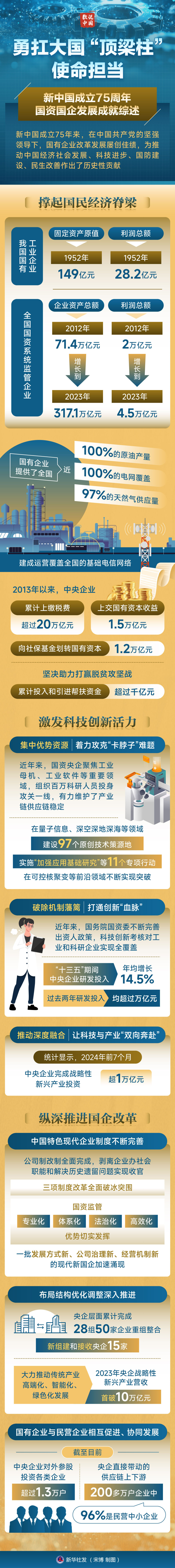 原標(biāo)題:數(shù)說中國·75載輝煌成就丨勇扛大國“頂梁柱”使命擔(dān)當(dāng)——新中國成立75周年國資國企發(fā)展成就綜述